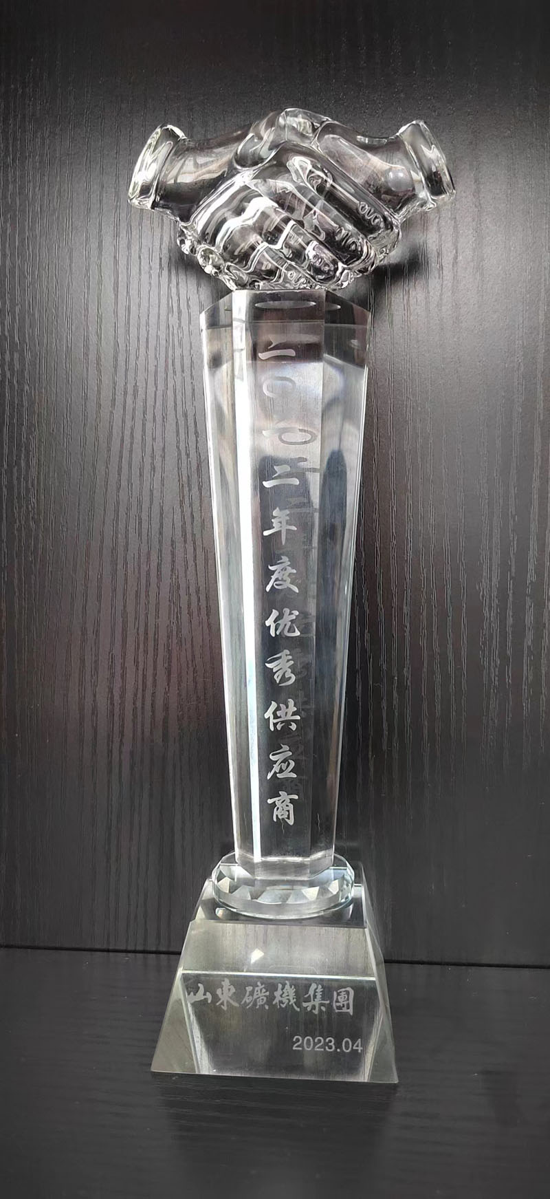 會議中頒獎環節由公司董事長趙華濤親自為十家供應商代表頒發獎杯、榮譽證書并合影留念。